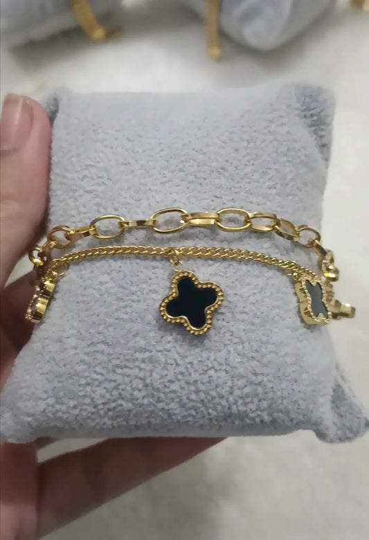 Premium Double Layer Clover Charms Stainless Steel Bracelet