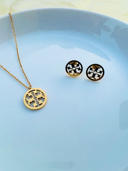 Tory pendant set premium quality stainless steel material gold colour with tops