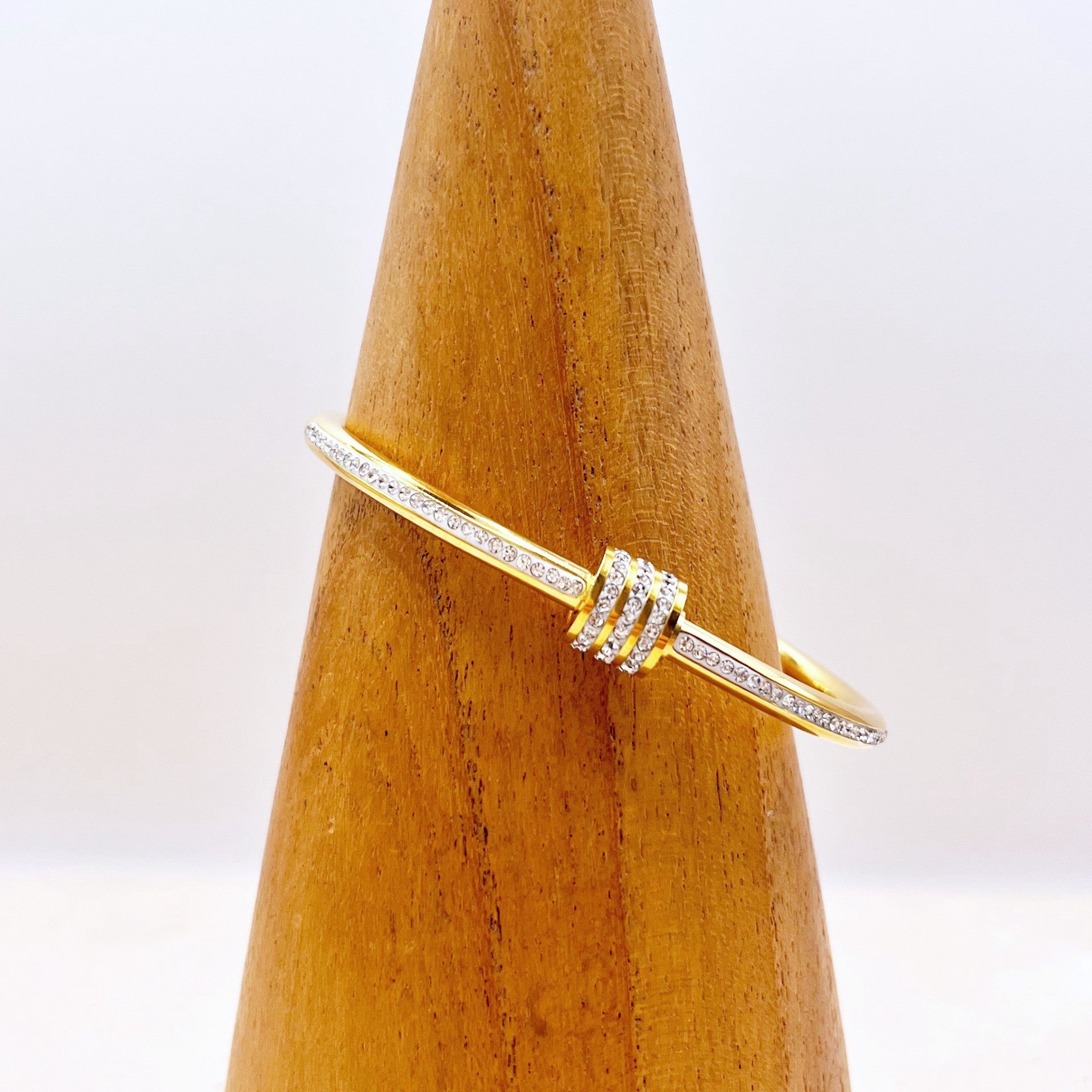 This stunning oval shaped bangle features a row of bezel set crystals across the top with a triple row feature with screw closure and looks amazing on it's own or added to your bracelet stack.