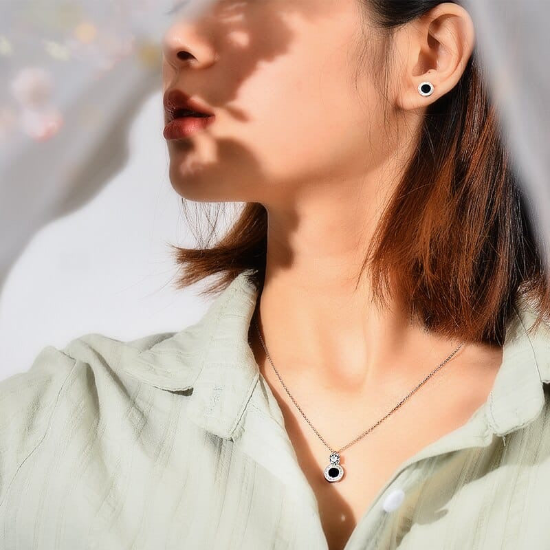 Elevate your style with the Bulgari Locket Set by AdornMe. Crafted with luxurious gold and black tones, this set is perfect for the sophisticated woman. Indulge in the elegance of Bvlgari and add a touch of luxury to your wardrobe. Exclusively available for women.